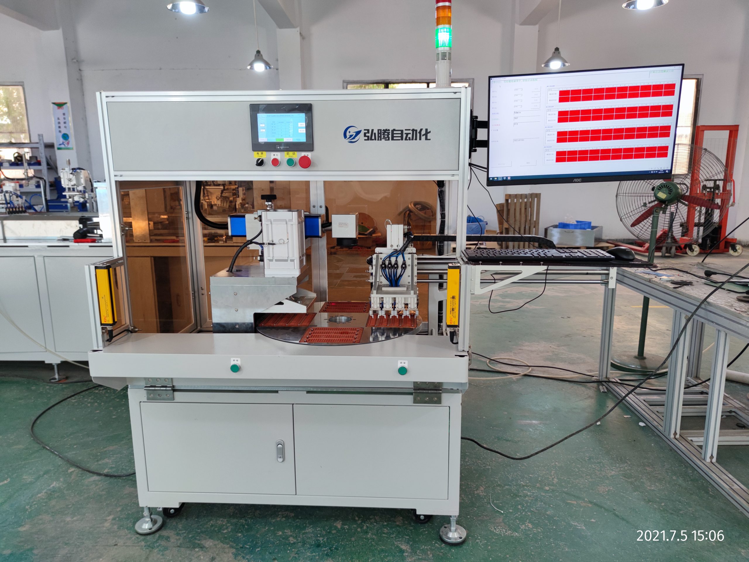 电子雷管芯片检测打标机主要应用于电子雷管模组成品及半成品的批量测试、编码、打标、分选作业,设备速度快,节约人工,单次旋转90度检测80发,检测速度7200-14000PCS/H,设备支持编码、直接接入数据库、分选剔除不良品,是电子雷管厂家生产必备的的自动化测试利器,充分保障了产品可靠性!