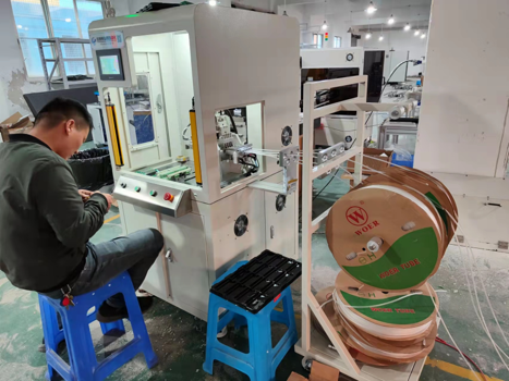 自动套热缩管机为我公司为民爆行业电子雷管生产工艺专门定制的自动完成设备,其具备电子雷管芯片蘸药后自动套热缩管能力,只需要1人放料,即可完成热缩管剪裁、套管、热缩成型工序,生产速度4500PCS/H,极大的节约了人工,最终成品一致性高。
